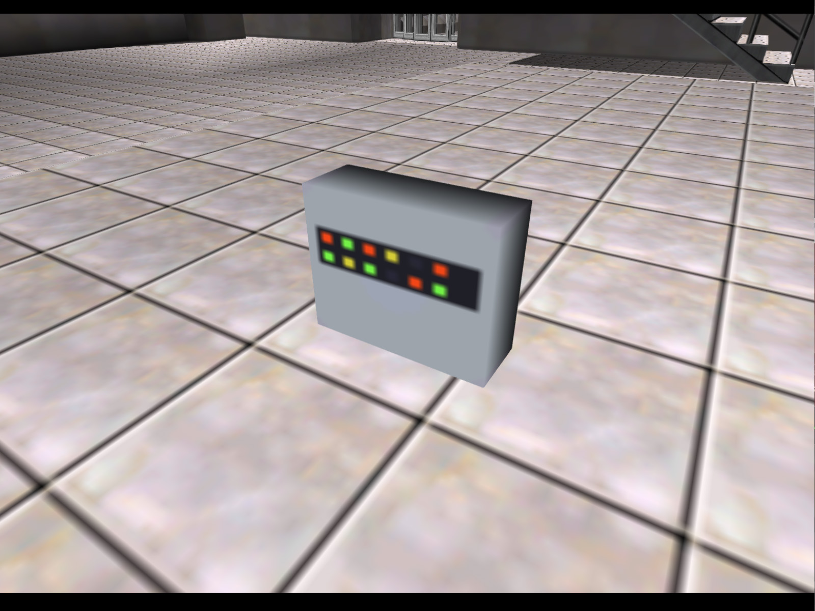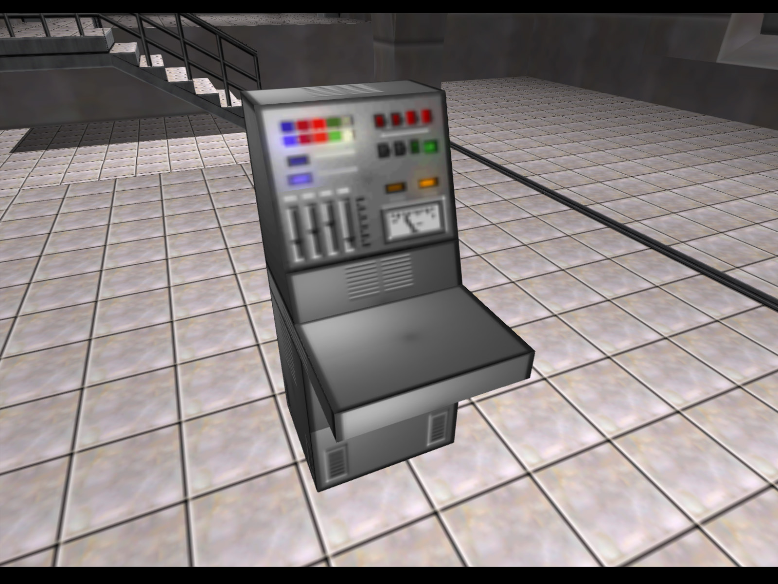 Electronics box with a panel of lights. A prerelease video briefly shows that this was originally what the Covert Modem was planted on before it was replaced by the screen with green scrolling text. This texture does appear in Facility's bottling room, but as part of the background, not as a model.