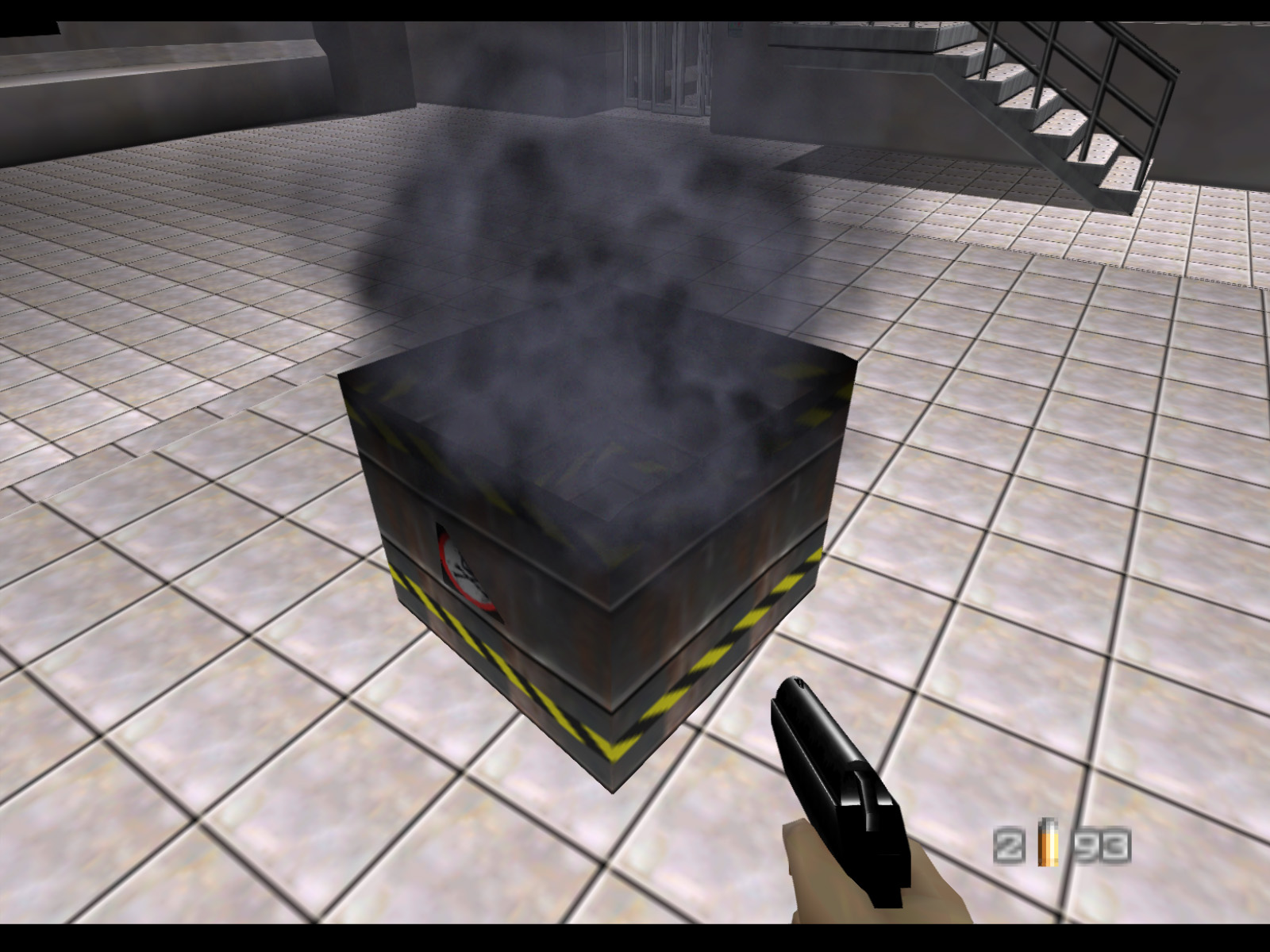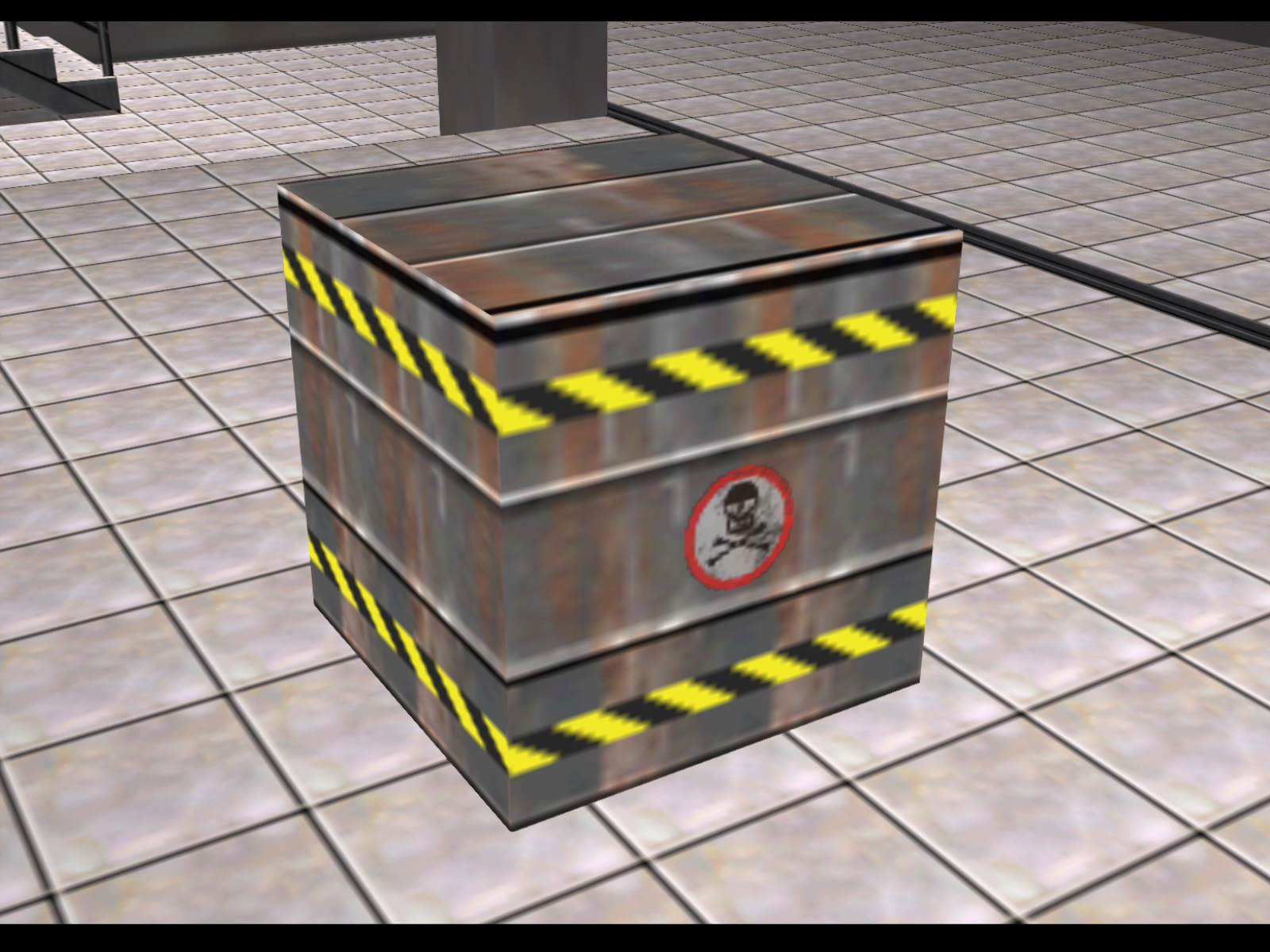 This crate design feels very strange because it uses the same textures as the explosive barrel. Perhaps this crate, unlike the silver ones, was always meant to be explosive and the design was meant to signal that.