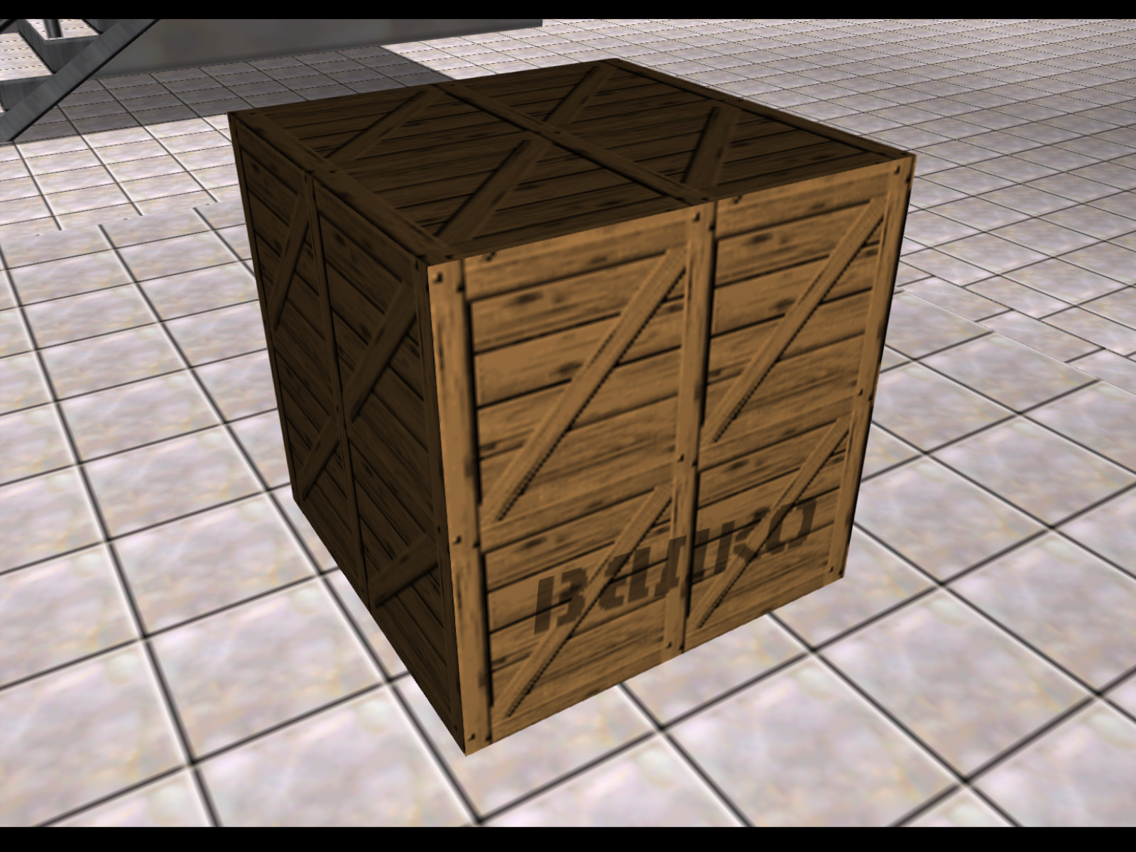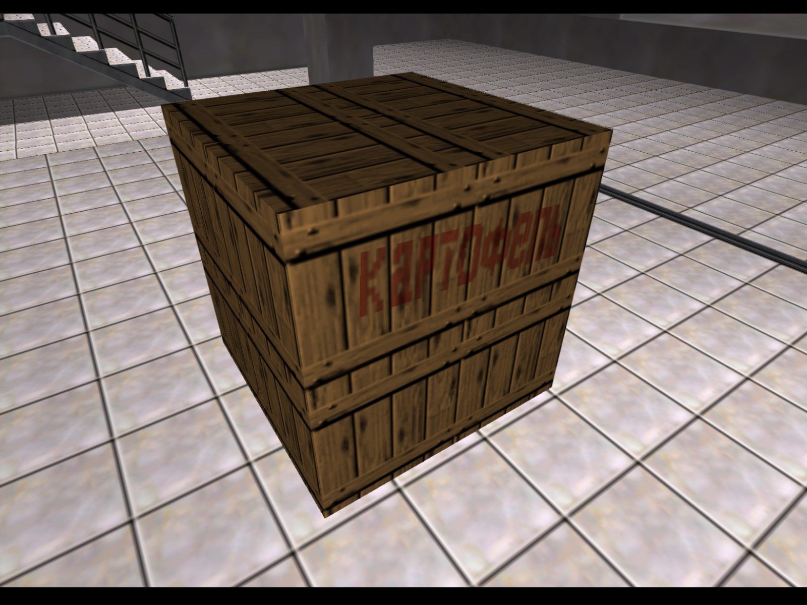2x2x2 cube of wooden crates with "Vadko" written in black on the sides. This is an intentionally misspelled version of "Vodka" to satify Nintendo.