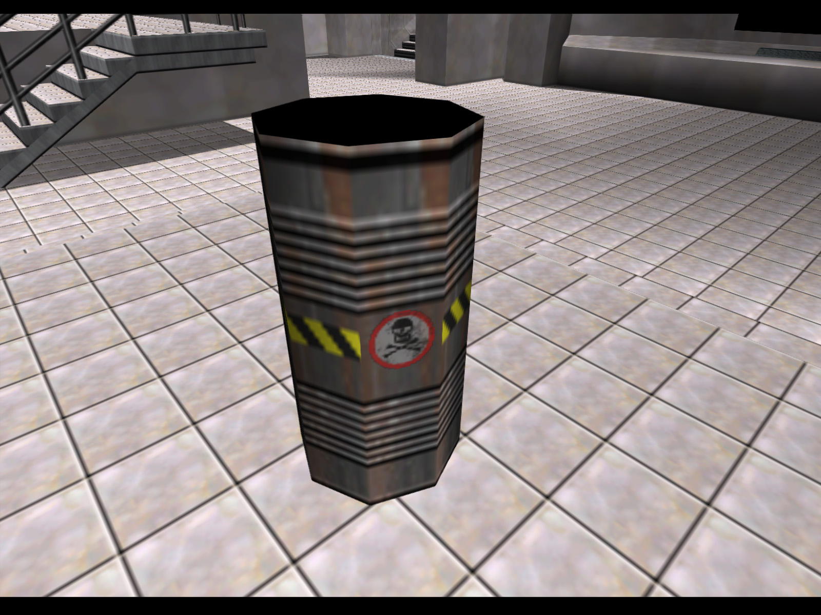This minor variant of the ubiquitous metal crate doesn't seem to be used anywhere. It creates a pretty big explosion when destroyed. All the metal crates are actually set to have large explosions, but most are flagged as invincible in the level setups.