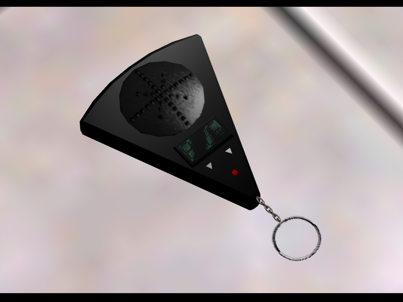 This gadget from The Living Daylights emits a stun-gas when when the first bars of Rule Britannia are whistled at it. The world model's LCD display has some z-fighting issues.