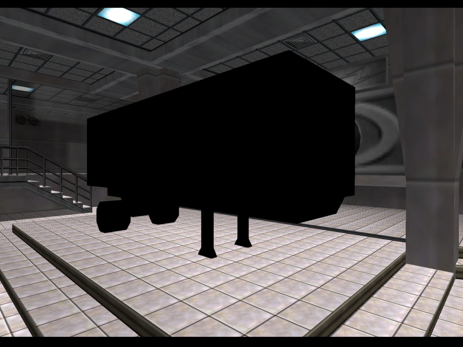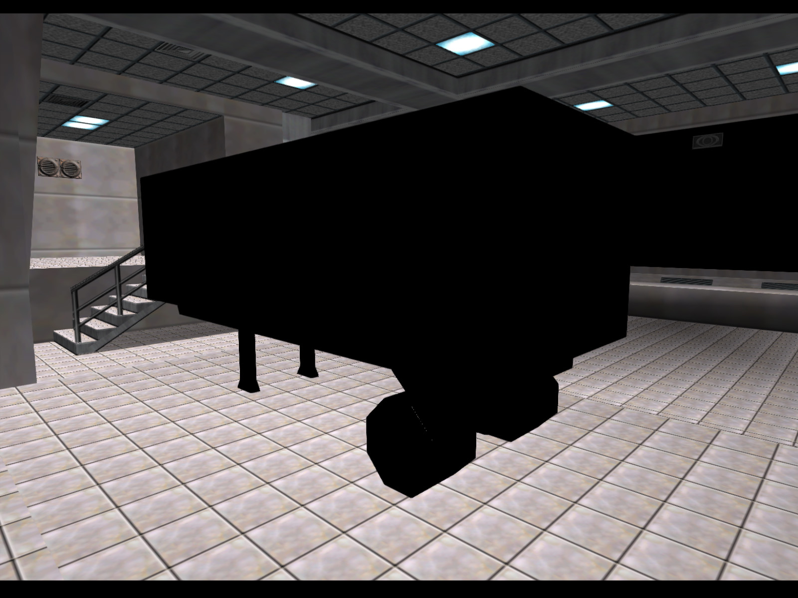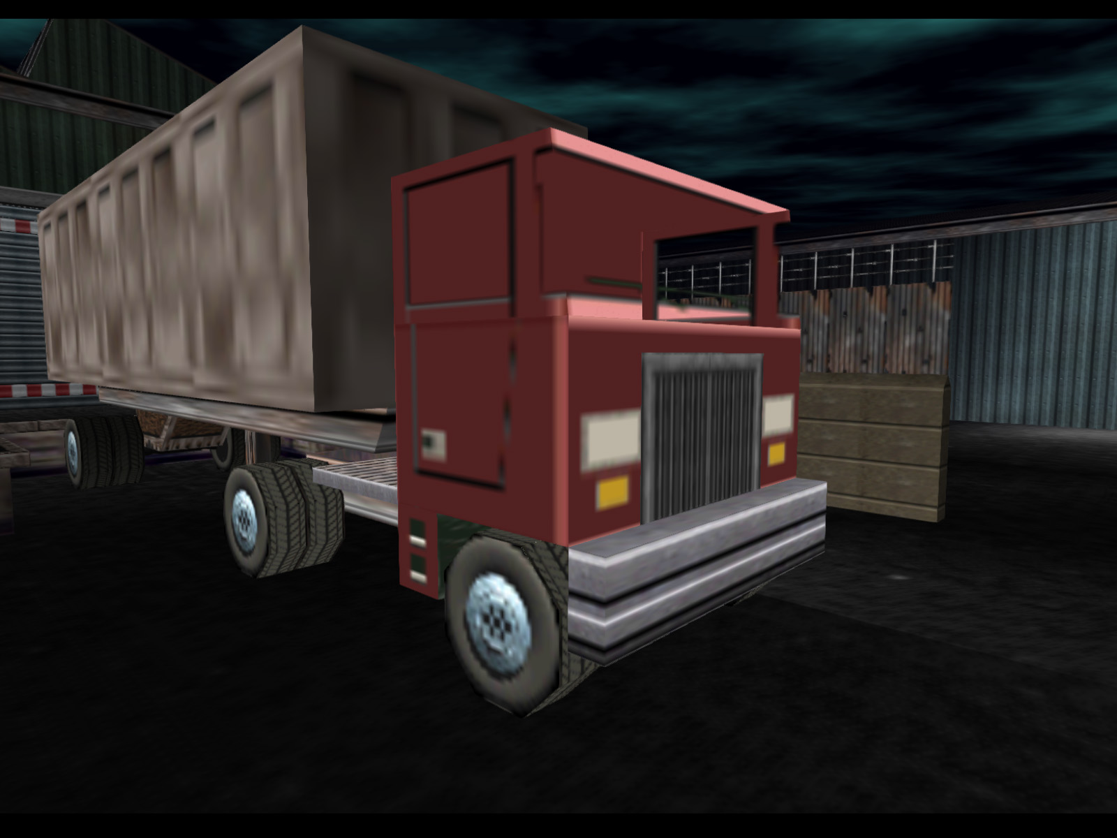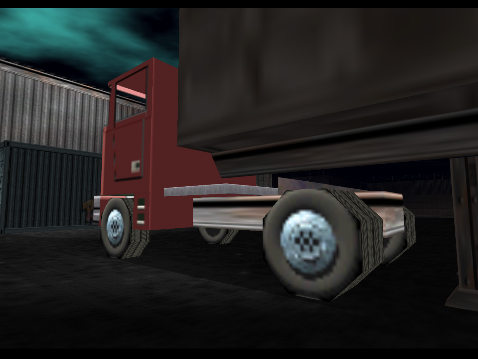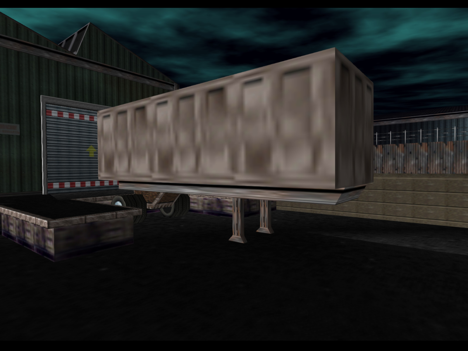 A truck trailer that appears completely black because of the vertex coloring. If it had white vertex coloring you would be able to see it uses the same textures as the trailer in Depot. Was this ever meant to move? The name "artictrailer," short for "articulated trailer," makes me think this was meant to go with the red truck that is also called "artic."