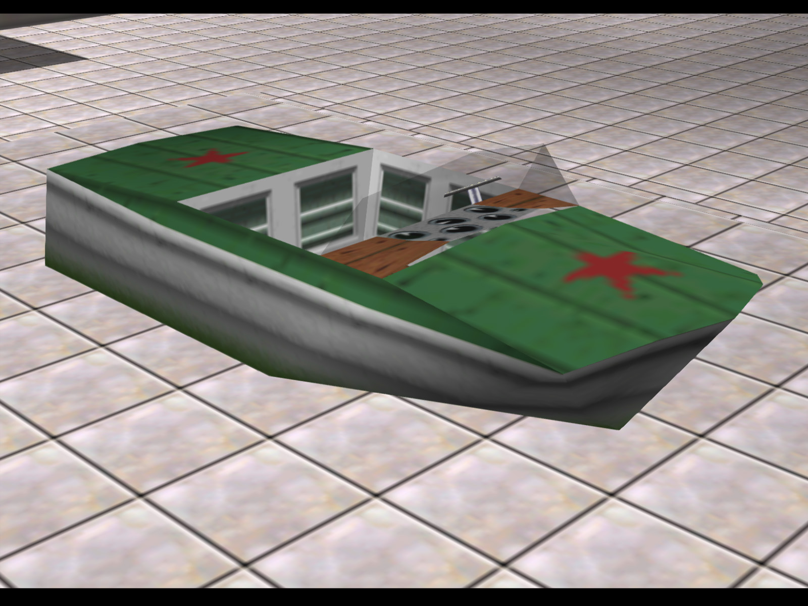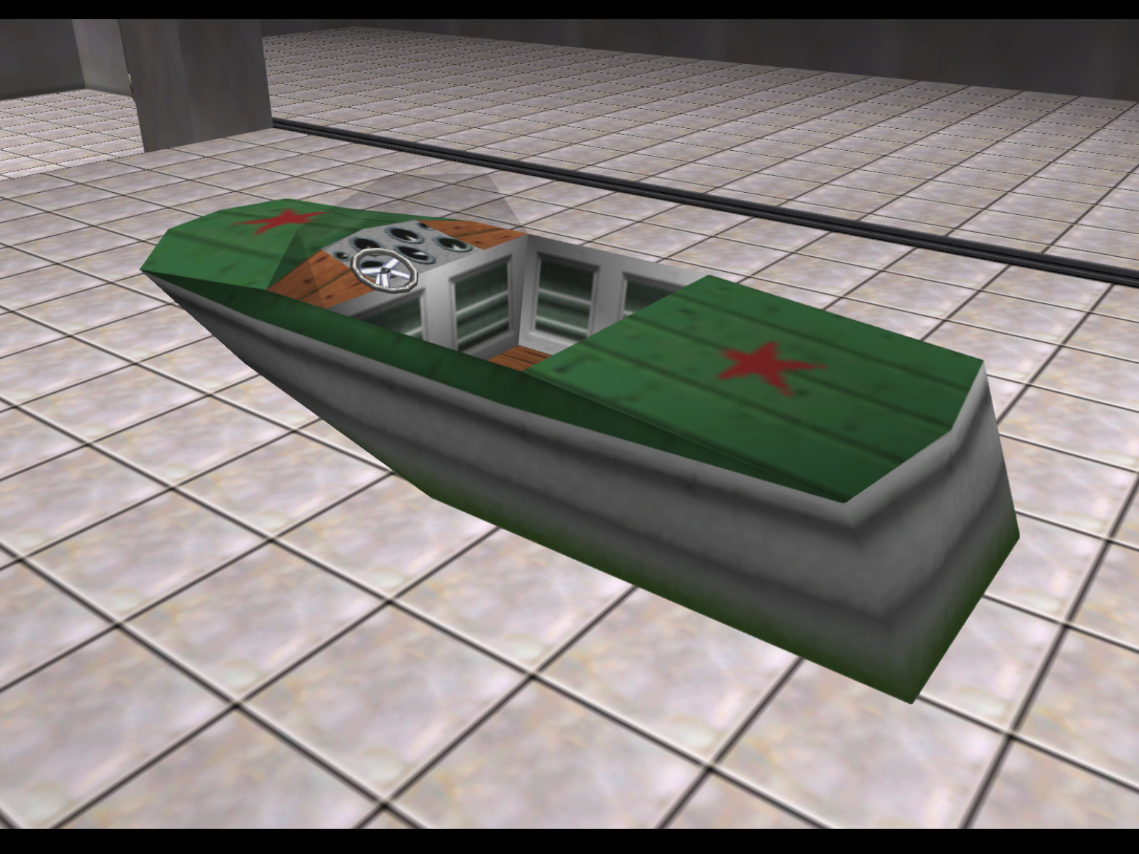 This speedboat would have allowed the player to cross the reservoir in Dam and access the "island." Ultimately, due to technical and time contstraints, the model was made, but the code to take the player to the island was not finished. This is what two of GoldenEye 007's developers had to say about the boat: