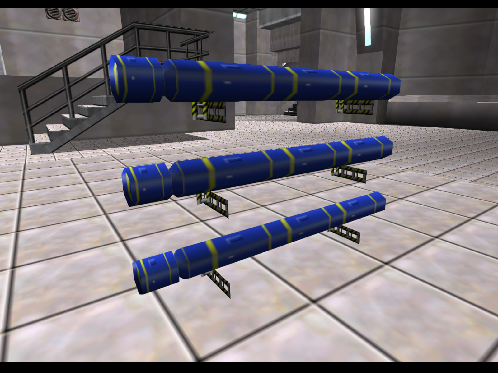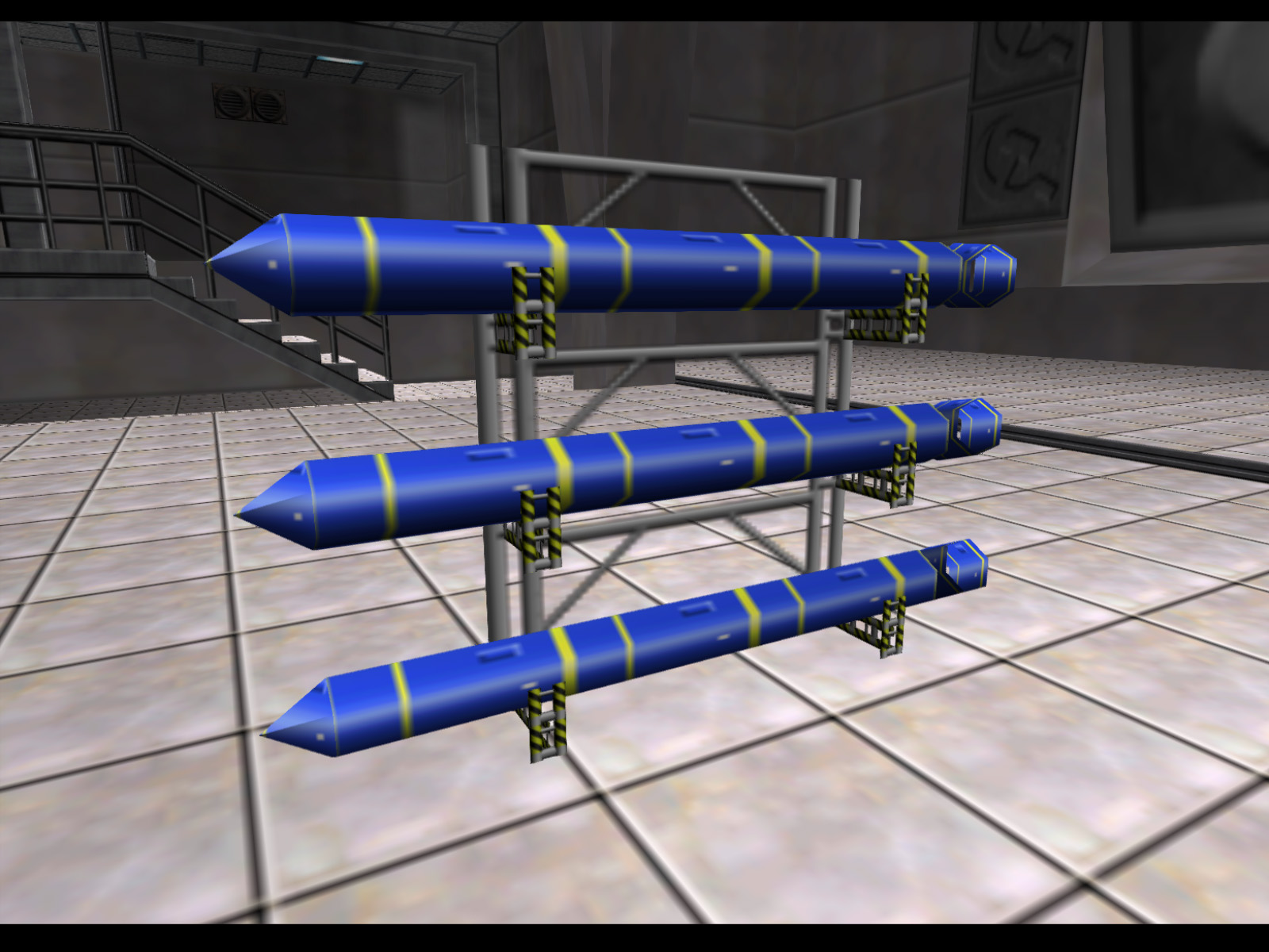 Three blue torpedoes held in a rack. This definitely must have been meant for Frigate, but it is unknown why it is not used.